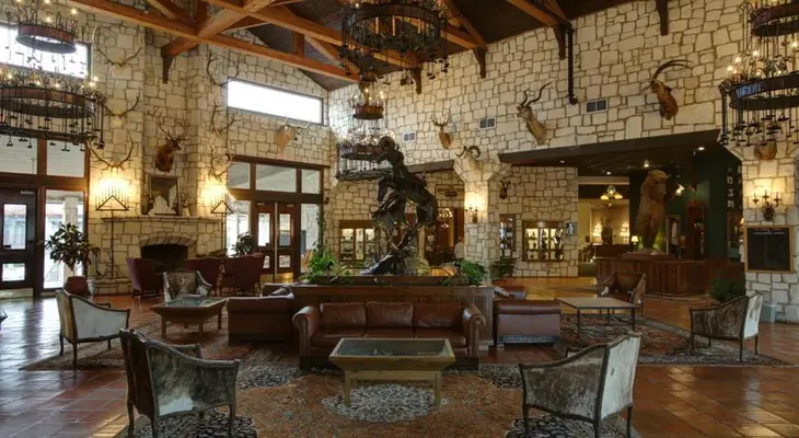 “No, there aren't horses or hayrides, but the rooms are all decorated in a Western theme, with exposed limestone walls and old-fashioned fixtures and curtains. ”