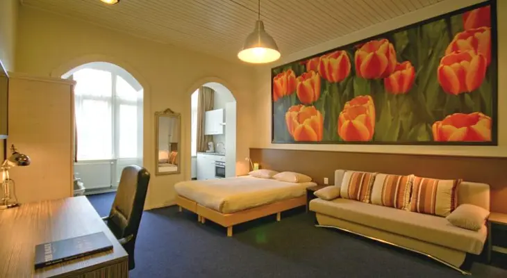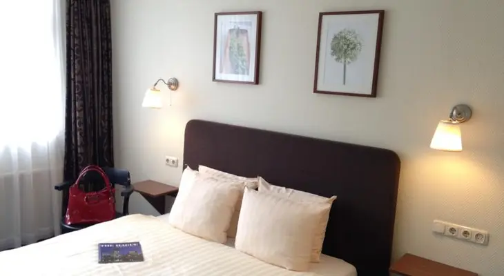 “This 33-room boutique hotel is in a proud art nouveau corner building... The cheapest rooms let you touch the walls – all at once.”