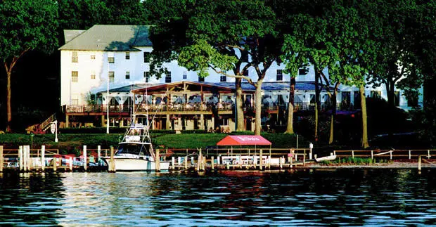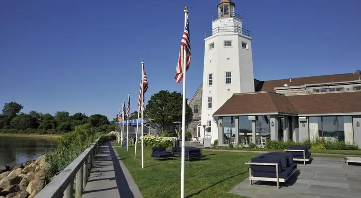 Overlooking Lake Montauk, this family-friendly resort is a classic summer getaway with views of the attached marina, bobbing with boats, and a white lighthouse. — Oyster