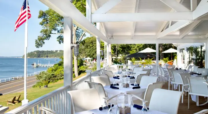 "Sits on seven scenic acres of land on Shelter Island's Crescent Beach and features 49 rooms and 16 charming cottages, a private beach, a pool, a spa, and a 100-seat American restaurant."