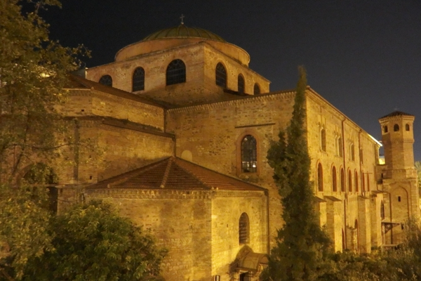 The Church of Agia Sofia (St Sophie), dating from the 8C, is remarkable for its huge size and unusual design; the layout of a three-nave basilica is combined with the Greek cross layout and a dome. — Michelin Guide