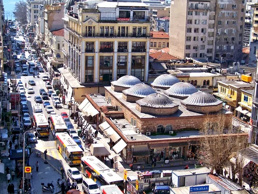 “ Built under the reign of Mehmed II in brick and stone and with six domes, it was the commercial hub of the Ottoman town.”