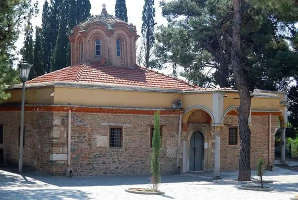 "The Vlatades Monastery, shaded with pine and cypress, is a cruciform structure that displays a mixture of architectural additions, from Byzantine times to the present." Full review