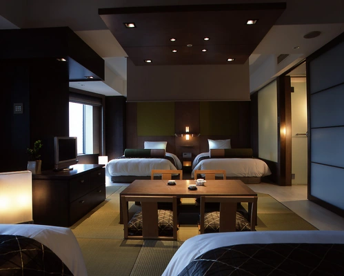 "The rooms are modern while still nodding to Japan's aesthetic past: Traditional colors such as indigo and red balance out the contemporary, minimal furnishings."