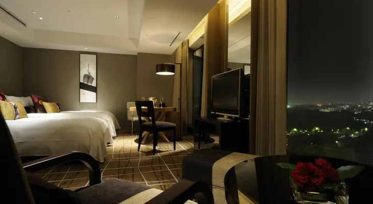 “Landmark hotel surrounded by a 400-year-old garden, with a choice of 24 restaurants, a Zen spa and Tokyo's biggest outdoor pool.”