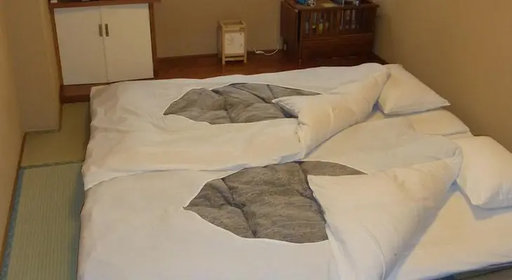 "Guests have a choice of 16 Japanese-style rooms with tatami, futon mattresses, and a shared bath, or six en suite Western versions with beds."