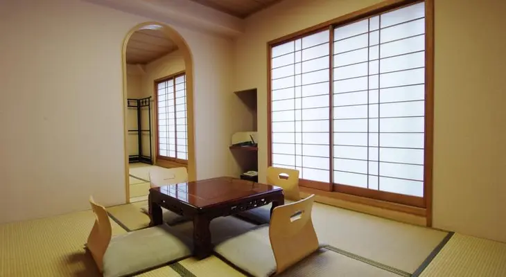 "This beautifully maintained ryokan is adorned with paper screen windows and tatami mats."