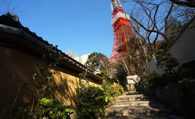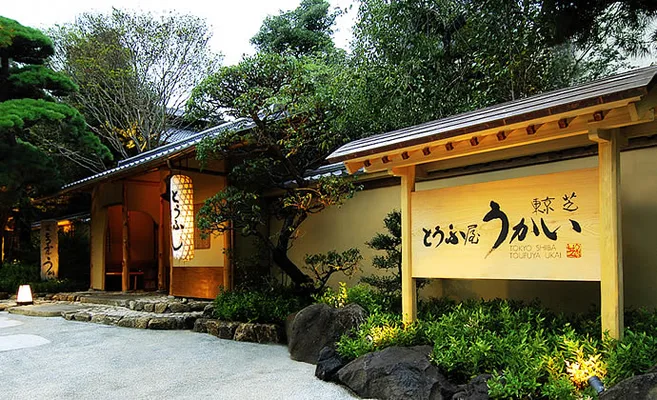 "Located at the foot of Tokyo Tower (a flashy copy of the Eiffel Tower), Tofuya Ukai is set in an old sake brewery in the middle of peaceful rolling gardens, pebbled paths, and koi-filled ponds."