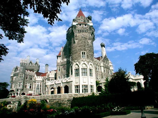 "Built by Sir Henry Pellatt in 1914, Toronto's historic hilltop castle, Casa Loma, showcases Gothic Revival architecture, beautiful gardens, and panoramic views of the city"
