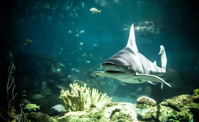 “North America's largest aquarium is sleek, angular, watery blue, and shaped like a shark.”