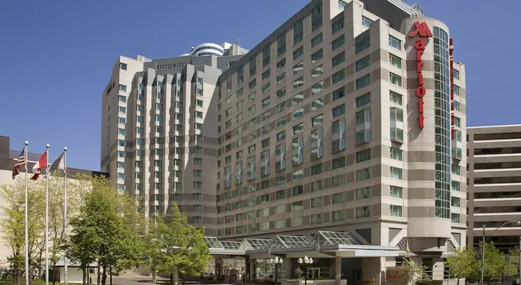 “Guest rooms at the Marriott's flagship hotel in Canada are connected to Eaton Centre through an aboveground walkway.”