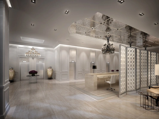 "An architectural landmark in Toronto's distinguished skyline, the newly built and innovatively designed Trump International Hotel & Tower Toronto features a sprawling, dark-marble-floored lobby."