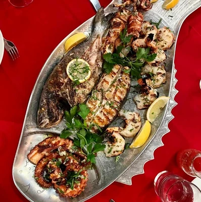 "Over-the-top decor (nude busts predominate) sets the tone at this seafood emporium. Customize your platter with the day’s catch. Fine pastas, risottos, and meat dishes too."