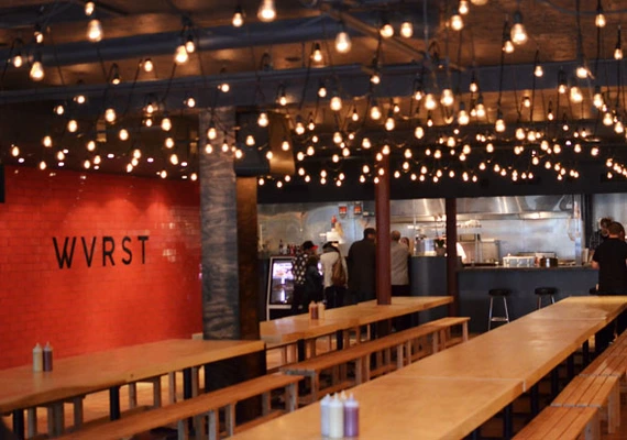"This bustling German-inspired beer hall specializes in the fine art of sausage making with over twenty-five options from which to choose." Full review