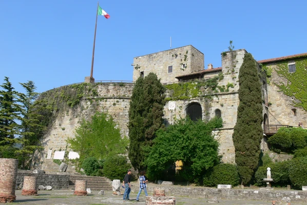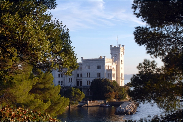 The castle, built in 1860 stands on the point of a headland overlooking the coast of Trieste. — Michelin Guide