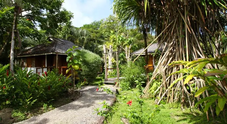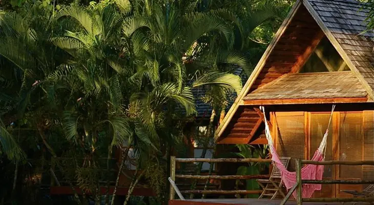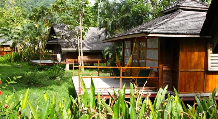 “Six luxurious and well-ventilated hardwood cabañas are located in a lush garden on the river, 50m from the beach.”