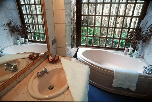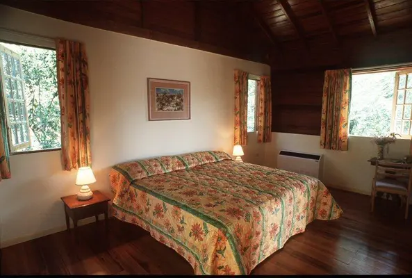 "Two self-contained one-bedroom wooden cottages within the Adventure Farm nature reserve, with kitchens, hardwood floors, tons of windows that open into the forest and a spacious deck." Full review