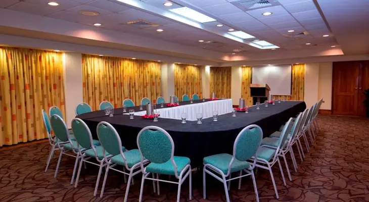 "This midrise hotel on the upper edge of Queen's Park Savannah offers a prime location for Carnival goers, just steps from the festival grandstands where the judging takes place."