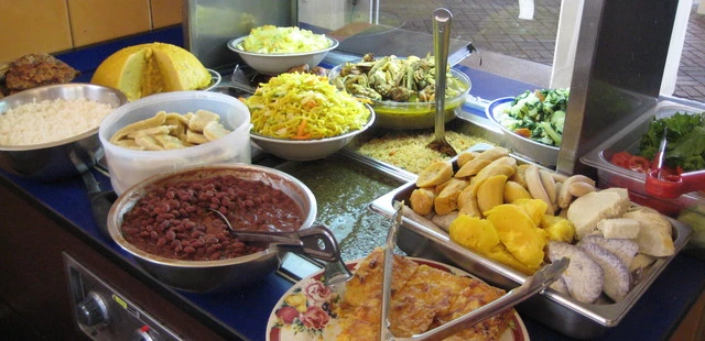 "Right on the water, Trini women sell homemade food from stalls around the perimeter of an open-air, picnic-benched eating area." Full review