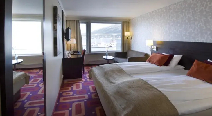 "Tromsø's snazziest hotel stretches over the sound toward Ishavskatedralen....comfortable rooms are also shipshape, with polished wood furnishings with brass trim that evoke life on the high seas." Full review