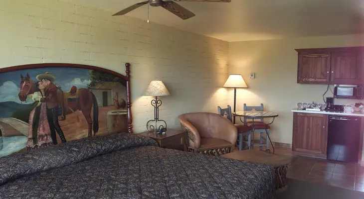 My favorites are the “Western”-style rooms, which have a sort of retro south-of-the-border decor that includes headboards painted with classic Mexican scenes