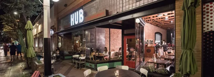 "Hub’s food ranges from burgers and meatloaf to elegant variations on comfort classics...a take on steak frites, is still less expensive than at other venues downtown—and it’s delicious." Full review