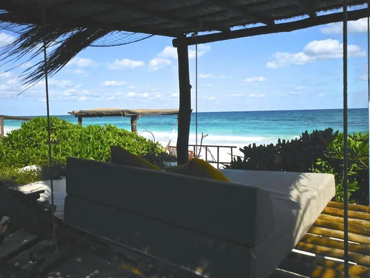 "Comparatively budget-friendly for the Tulum Hotel Zone...eco-friendly Nueva Vida de Ramiro has 33 rustic rooms and studios set within a natural setting along a long stretch of beach." Full review