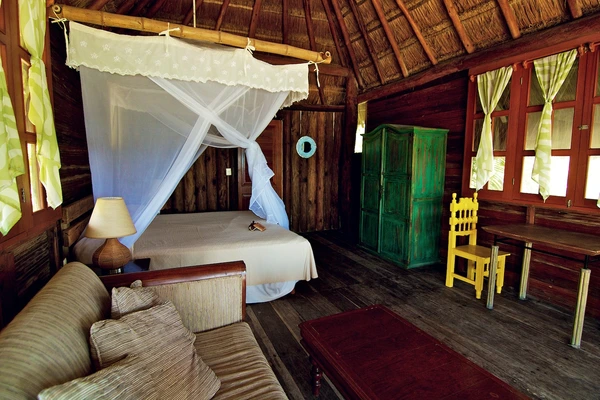 “The hotel's spartan-but-chic suites, many in two-story, thatched-roof units, are clean and elegant, with rustic furnishings made of tropical woods.”