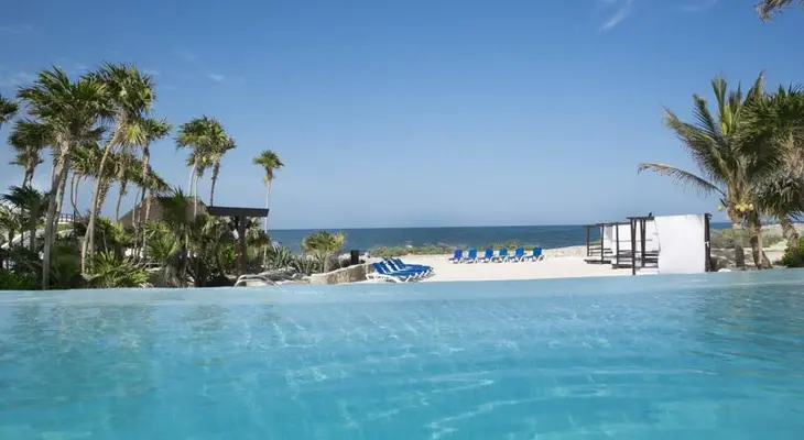 "This 94-room all-inclusive is a stylish, adult-only oceanfront property located where the road from Tulum town meets the road to the beach." Full review