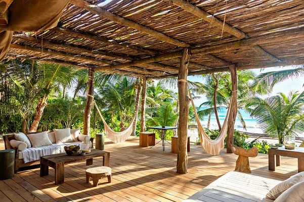 “A stylishly converted beach house set among the palm trees on Tulum beach.”