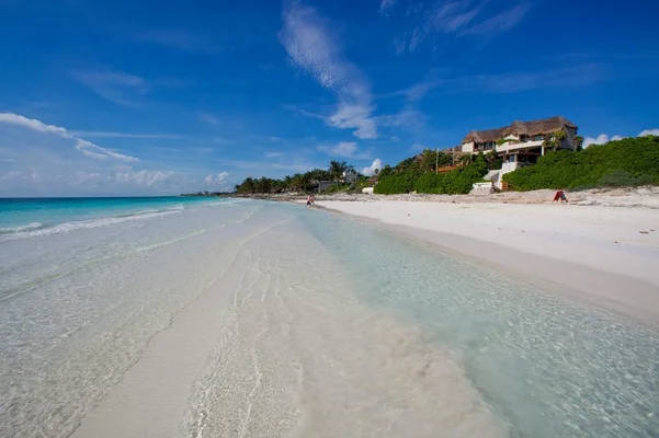 "On the quieter side of Tulum's beachfront, this small, hip hotel is a 25–minute walk from the ruins along a powdery stretch of white sand." Full review
