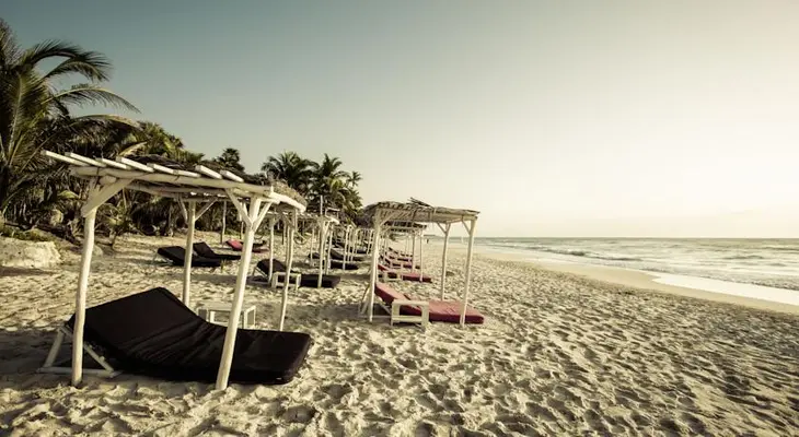 "Stylish, sustainable palapa huts on a seemingly deserted stretch of white-sand Caribbean coastline." Full review