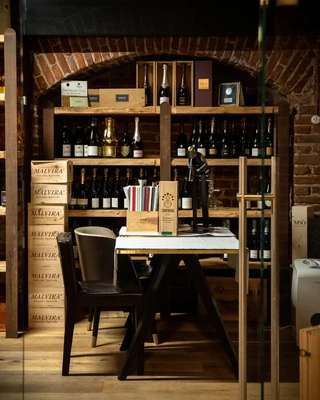 Well cared-for rustic environment in the dining rooms, with wooden ceiling beams characterising this historic city restaurant, where you can sample typical and tasty Piedmonts cuisine. — Michelin Guide