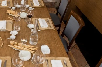 “The ocher-color walls and the ancient brick vaulting in this small, bright space set the stage for traditional meat and seafood dishes served with creative flair.”