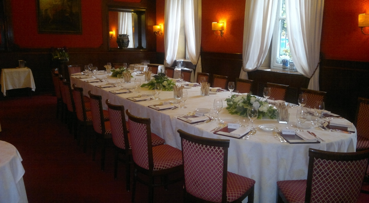 "Scarlet fabrics, lampshades and elegant wood panelling all add to the muted ambience of this elegant restaurant." Full review