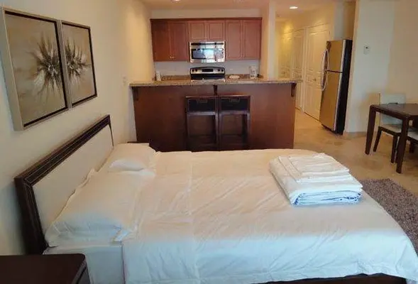 “Made up of 78 large one- and two-bedroom luxury condos (each with a kitchen and washer/dryer), this condo-hotel complex offers stunning views of the Caribbean.”