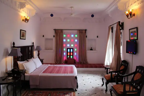 "This fine old white haveli is one of the best lakefront properties in town. Rooms are beautifully decorated with traditional touches and come with a/c, TV and lake views."