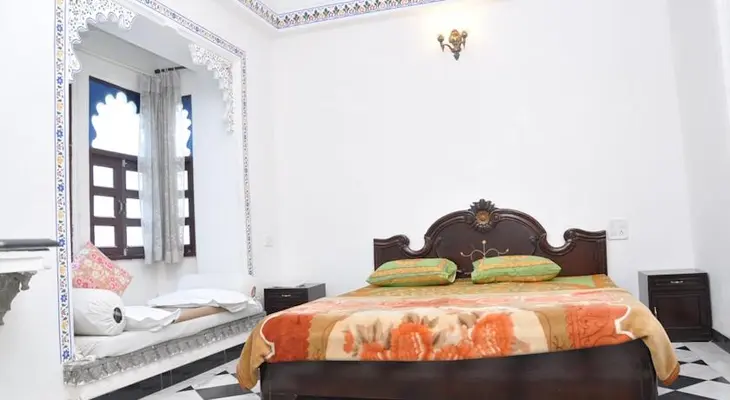 “Popular and reliable budget hotel in an atmospheric traditional haveli. There’s a wide range of rooms of varying standards (fan and a/c), including some with lake views.”