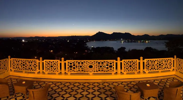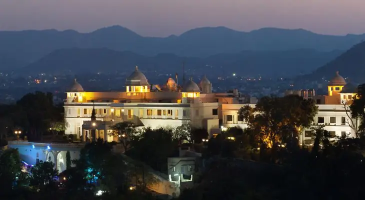 "Luxury hotel occupying a nineteenth-century hilltop guesthouse above Fateh Sagar Lake. It’s strong on creature comforts, with well-equipped rooms and a huge pool."