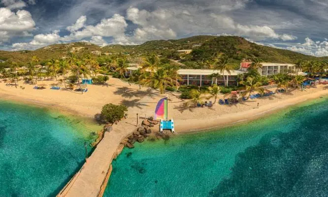 "This family-run resort is a casual, barefoot place to stay. A complex of pink two-story buildings, it’s built around a crescent-shaped beach on the sands of Bolongo Bay." Full review
