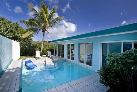 "25 privately owned and individually designed vacation villas, with full kitchens, flat-screen TVs, separate living or dining areas, and private outdoor terraces with barbecue grills and pools." Full review
