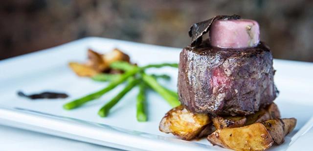 Come early and sidle up to the beautiful mahogany bar, where you can choose from an extensive wine list.