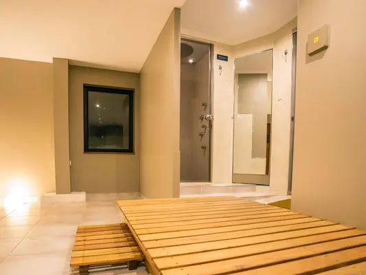“All feature Portuguese linens, solid oak furnishings, and the Las Hayas trademark: crisp white fabric-padded walls, covered in bright one-color floral prints. ”