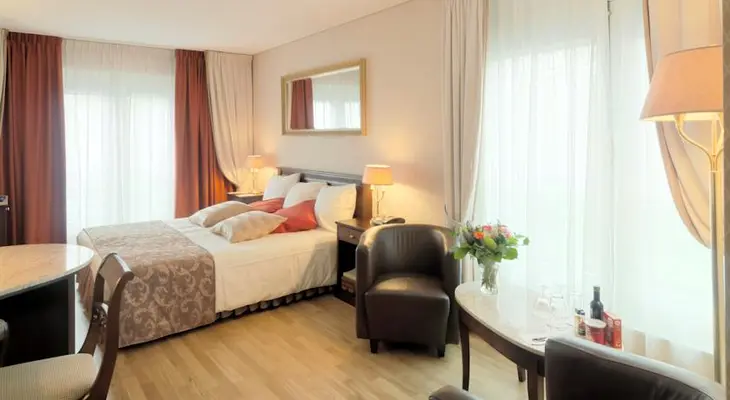“This former military hospital has been transformed into Utrecht's most luxurious hotel, with comfortably large guest rooms fitted out with terra-cotta and gold furnishings (a bit overdone) and enormously heavy curtains roped back to reveal almost floor-to-ceiling sash windows.”