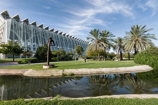 The Príncipe Felipe Science Museum (Museo de las Ciencias Príncipe Felipe) stands behind a huge triangular pool filled with turquoise water (where you can float in enormous transparent bubbles). — Michelin Guide