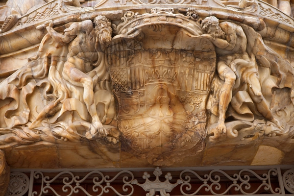“A pair of wonderfully extravagant rococo caryatids (columns in the shape of female figures) curl around the main entrance of this over-the-top palace.”