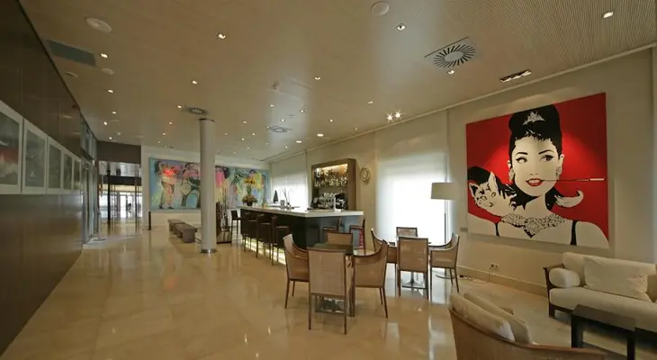 "The inside... is pure Spain, with a dramatic glass elevator surrounded by a cascading waterfall and paintings by Valencian artists." Full review