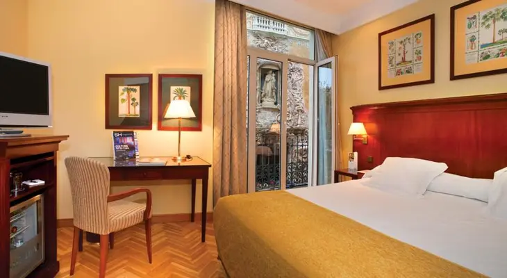 "Occupies the 18th-century former palace of the Duke of Cardona and maintains a sense of quiet decorum from the graceful main stairway to the tasteful traditional furnishings in the guest rooms" Full review