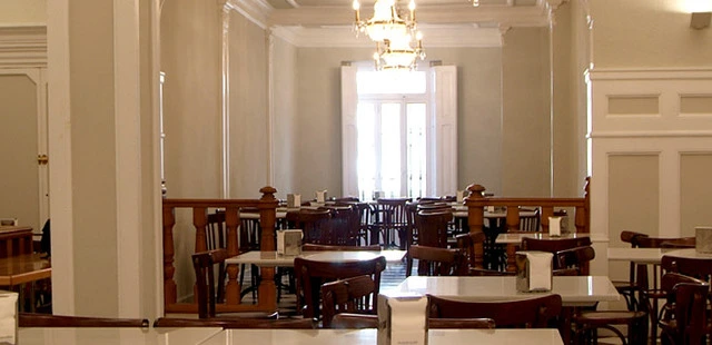 "More colorful majolica tiles adorn the elegant main dining room, where perfectly coiffed matrons sit chatting while they dip long donuts called (we're not kidding) fartons into their horchata."