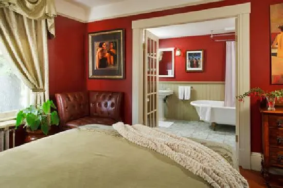 "Beautiful 1912 inn with seven antique-laden guestrooms coloured in shades of burgundy and aubergine."